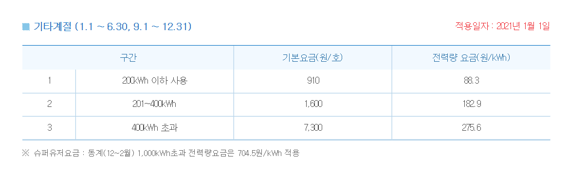 대체로 여름이 아닌 계절에서는 중간단계, 200~400Kwh를 쓴다고 가정하면,